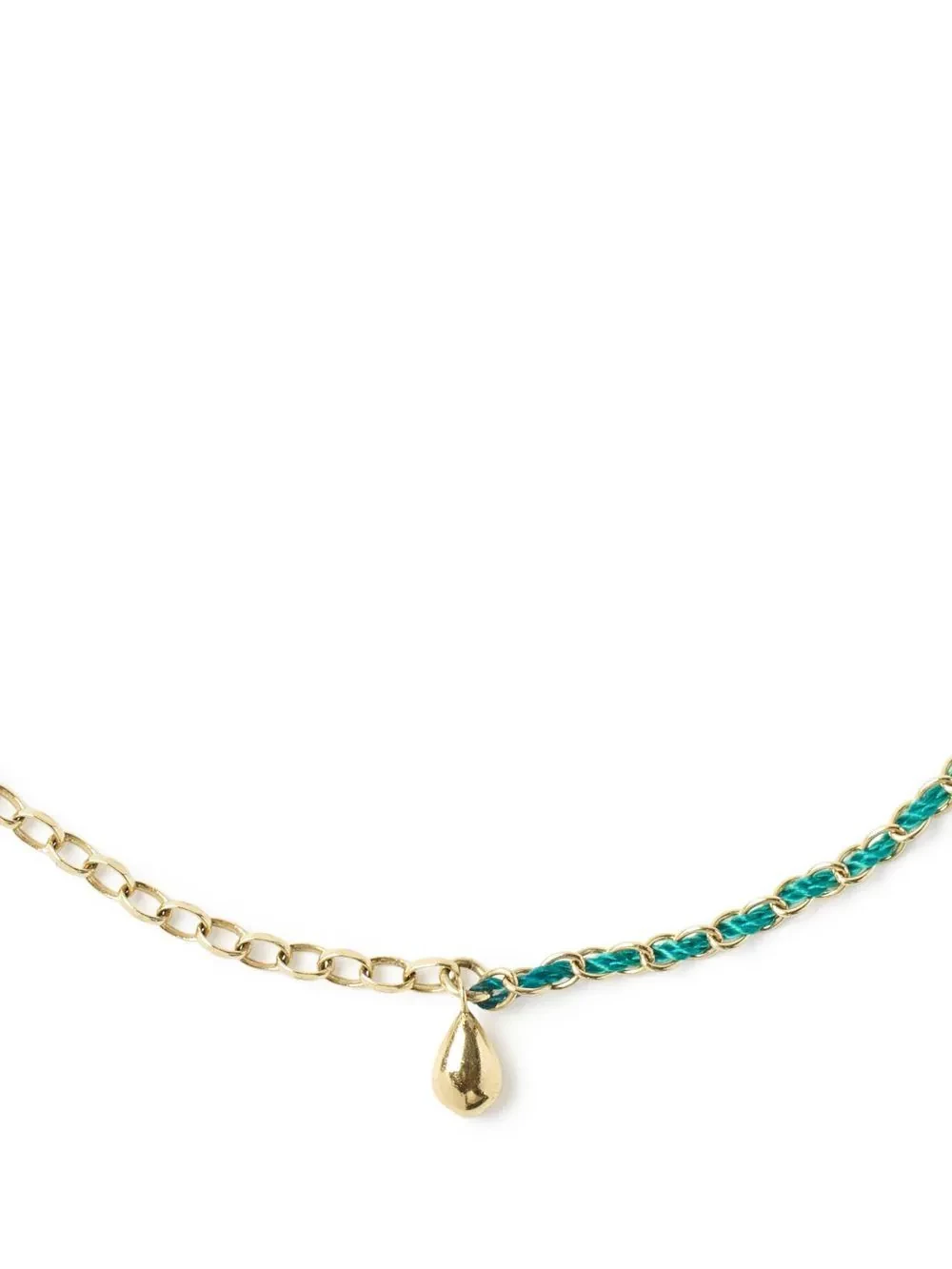 Taken from The Alkemistry's collection named Vianna, the Latin word for 'alive', this anklet is inspired by the fluid nature of water with its aqua green silk cord woven into an 18kt yellow gold chain. The piece is completed with a drop-shaped charm, meant to resemble the glistening oceans.