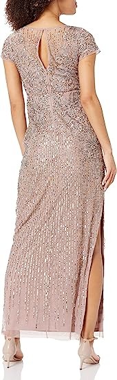 Aidan by Aidan Mattox Women's Short Sleeve Beaded Illusion Yoke Column Gown