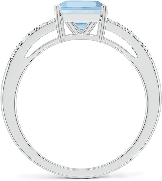 Angara Natural Aquamarine Solitaire Ring for Women, Girls in 14K Solid Platinum | March Birthstone Jewelry Gift for Her | Birthday | Wedding | Anniversary | Enagagement