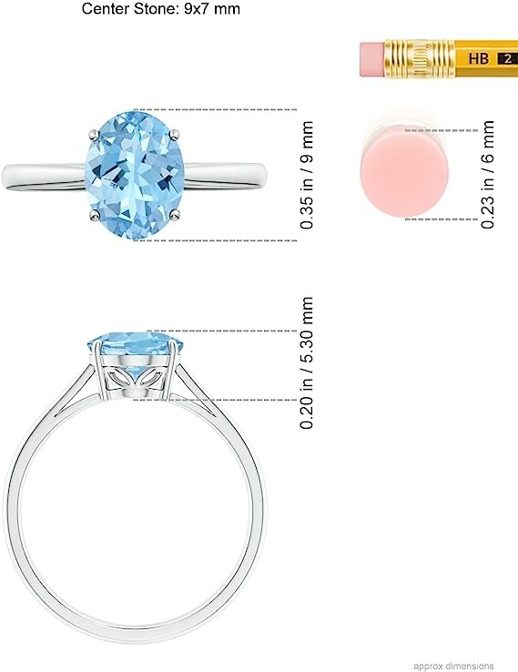 Angara Natural Aquamarine Solitaire Ring for Women, Girls in Sterling Silver/14K Solid Platinum| March Birthstone Jewelry Gift for Her | Birthday| Wedding| Anniversary| Engagement