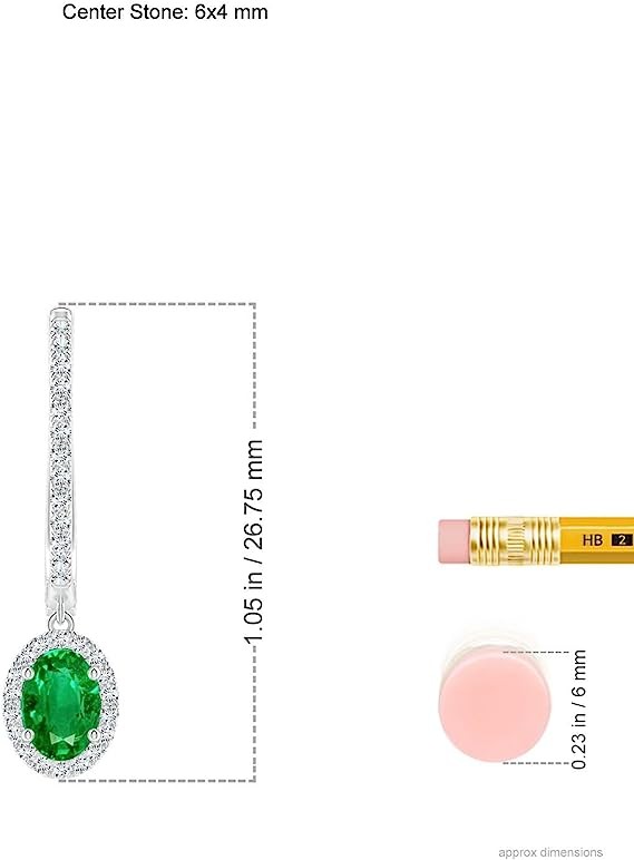 ANGARA Natural Emerald Halo Earrings for Women Girls in 14K Solid White Gold | May Birthstone Jewelry Gift for Her | Birthday | Wedding | Anniversary