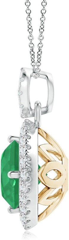 Angara Natural Emerald Halo Pendant Necklace for Women, Girls in 14K Dual Tone Solid Gold | May Birthstone | Jewelry Gift for Her | Birthday|Wedding Anniversary