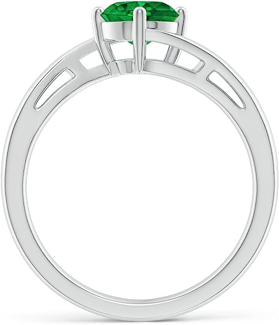 Angara Natural Emerald Solitaire Ring for Women, Girls in 14K Solid Platinum | May Birthstone Jewelry Gift for Her |Birthday|Wedding|Anniversary|Engagement