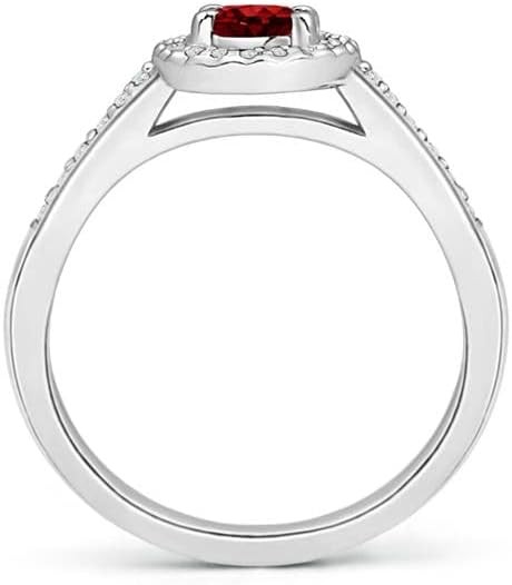 Angara Natural Ruby Halo Ring for Women, Girls in 14K Solid Platinum | September Birthstone Jewelry Gifts for Her | Wedding | Engagement | Anniversary