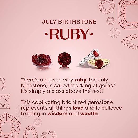 •  Ruby is the birthstone for the month of July and the traditional gemstone gift for the 15th & 40th wedding anniversaries.