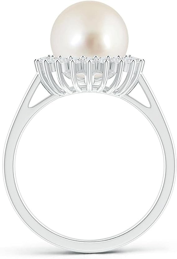 Angara Natural South Sea Cultured Pearl Halo Ring for Women, Girls in Sterling Silver/14K Solid Gold| June Birthstone Jewelry Gift for Her | Birthday| Wedding| Anniversary| Engagement