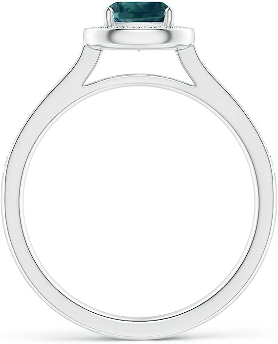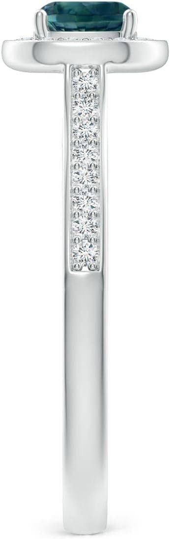 Angara Natural Teal Montana Sapphire Halo Ring for Women, Girls in 14K Solid Platinum | September Birthstone Jewelry Gift for Her | Birthday | Wedding | Anniversary | Enagagement