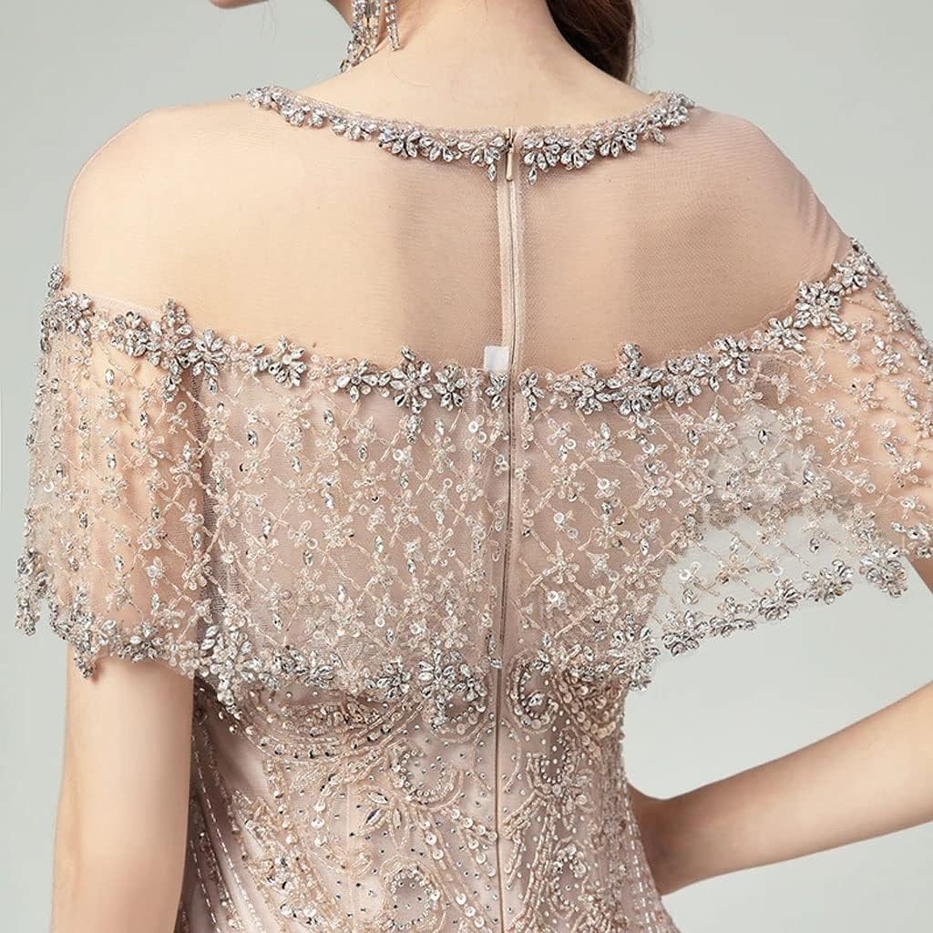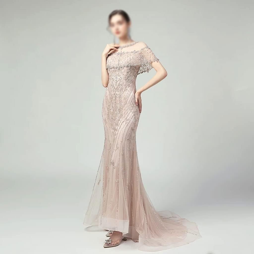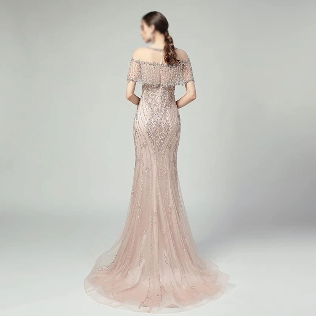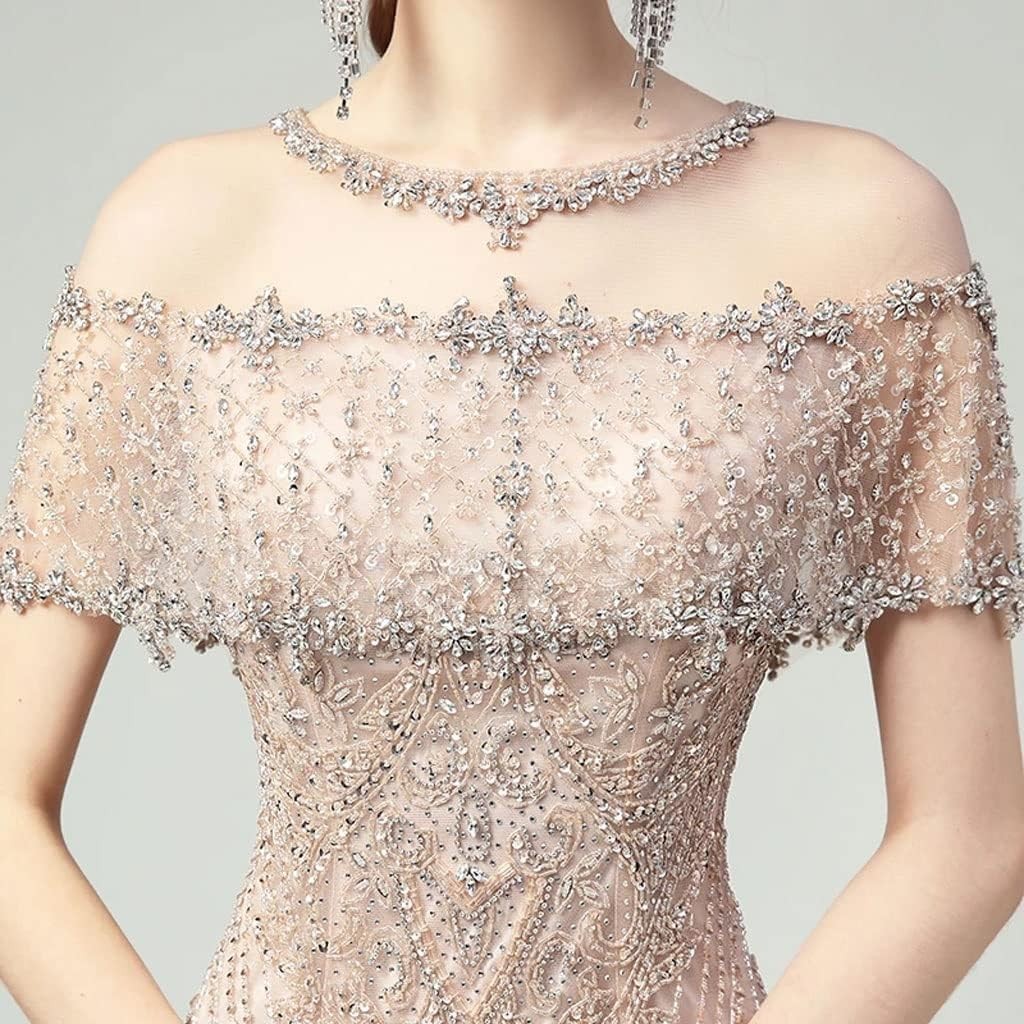 BBSJ Long Evening Dress Off Shoulder Floor Long Mermaid Evening Dress with Crystals