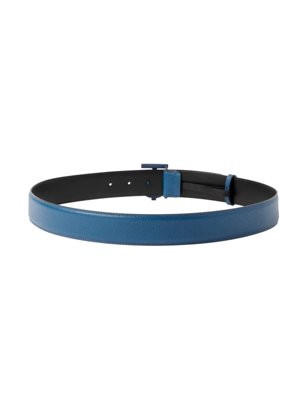 grained leather belt from BURBERRY featuring blue, leather, grained texture, logo buckle fastening, tonal hardware, belted cuffs and adjustable fit.
