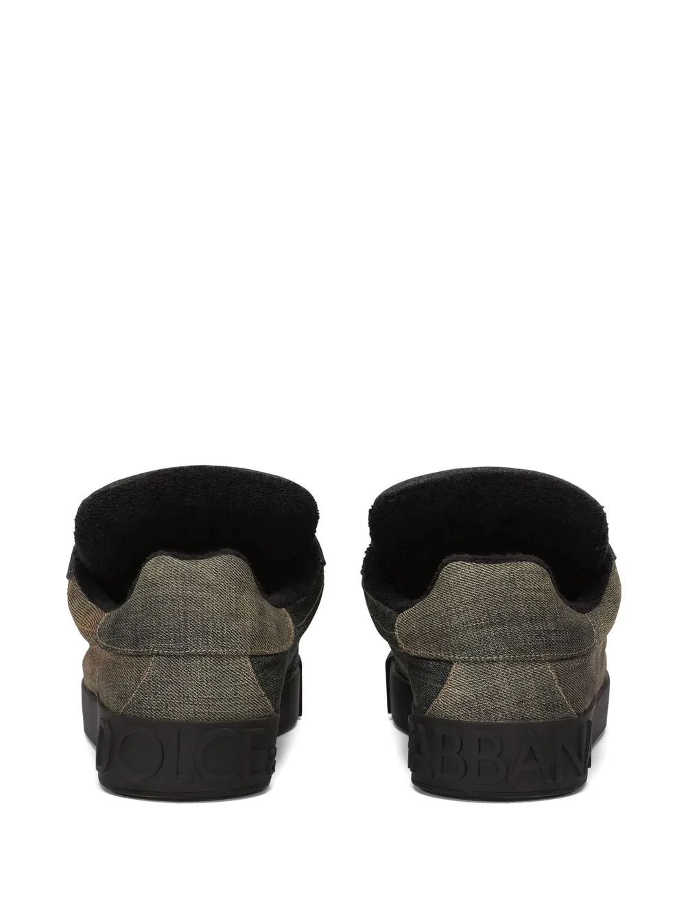 denim lace-up sneakers from DOLCE & GABBANA featuring blue, cotton blend, denim, contrast stitching, embossed logo to the rear, rubber toecap, round toe, front lace-up fastening and flat rubber sole.