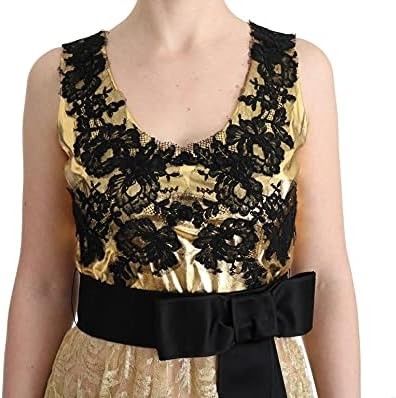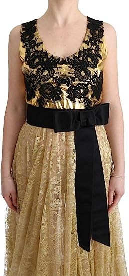 Dolce & Gabbana Gold Black Floral Lace Dress