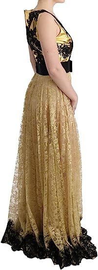Gorgeous brand new with tags, 100% Authentic Dolce & Gabbana gold and black floral lace gown dress.