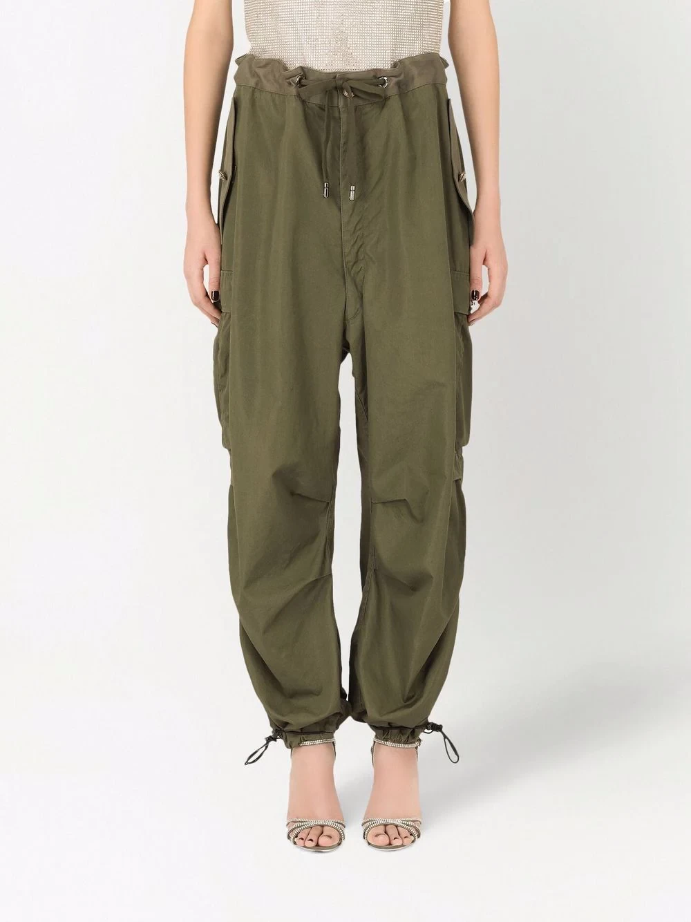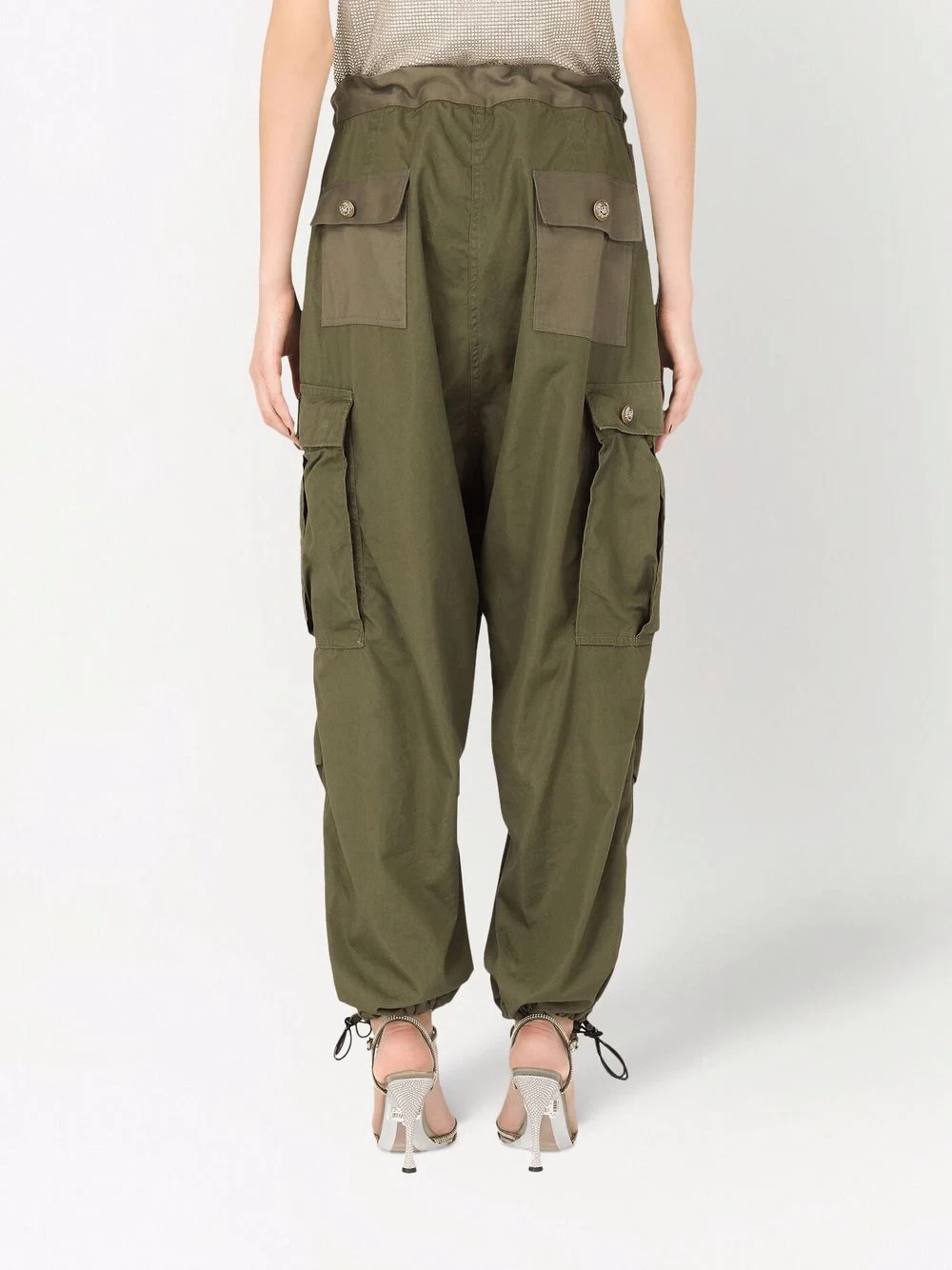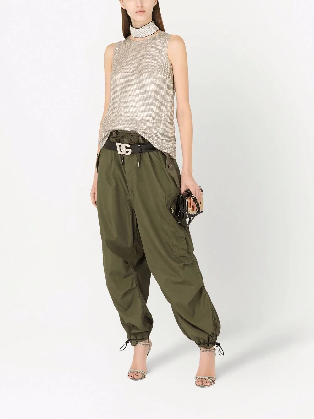 Dolce & Gabbana's SS22 collection gives military-inspired designs a contemporary twist. As showcased by these cargo trousers, the drawstring cuffs elevate the silhouette for a relaxed look.