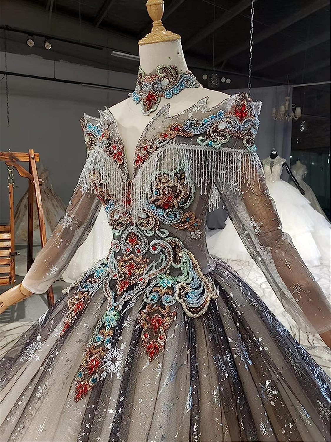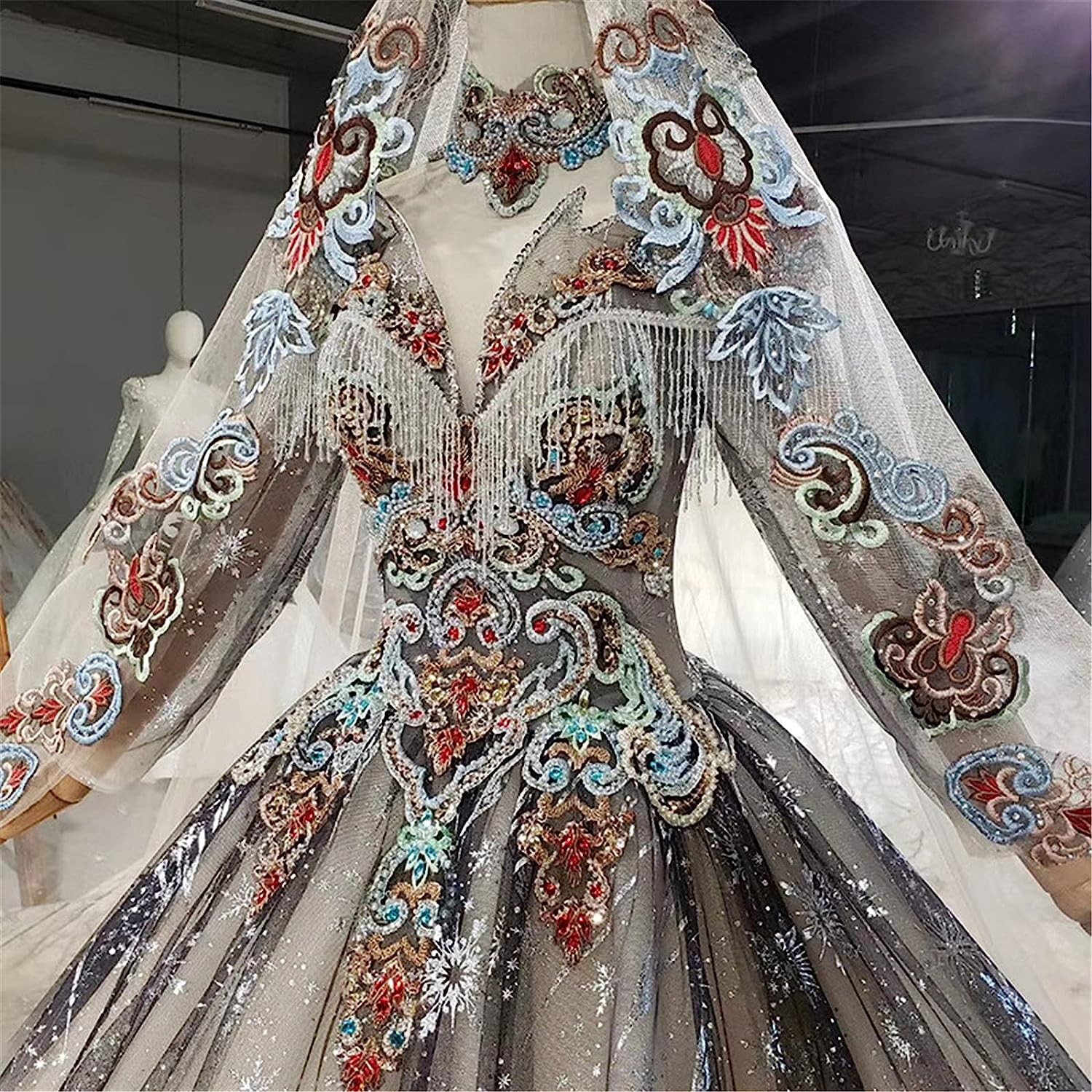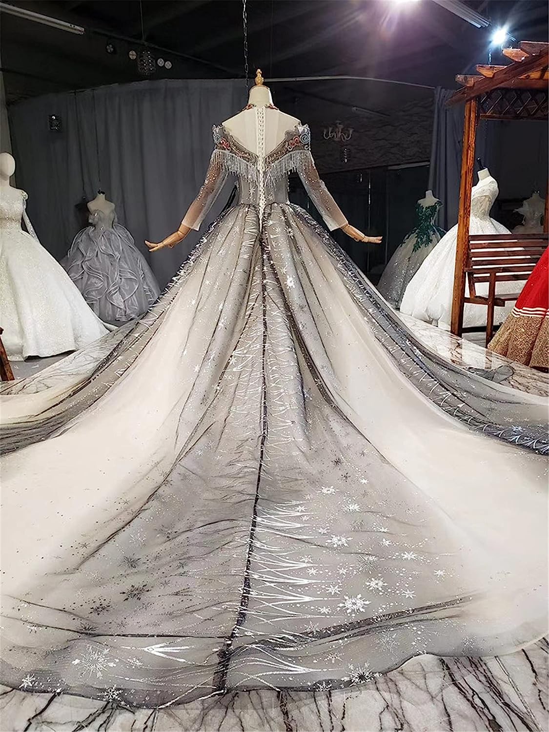 Customize Long Mesh Wedding Evening Dress Crystal Tassel Hand Stamped Long Sleeve Luxury Women Prom Stage Performance Bridesmaid Dresses