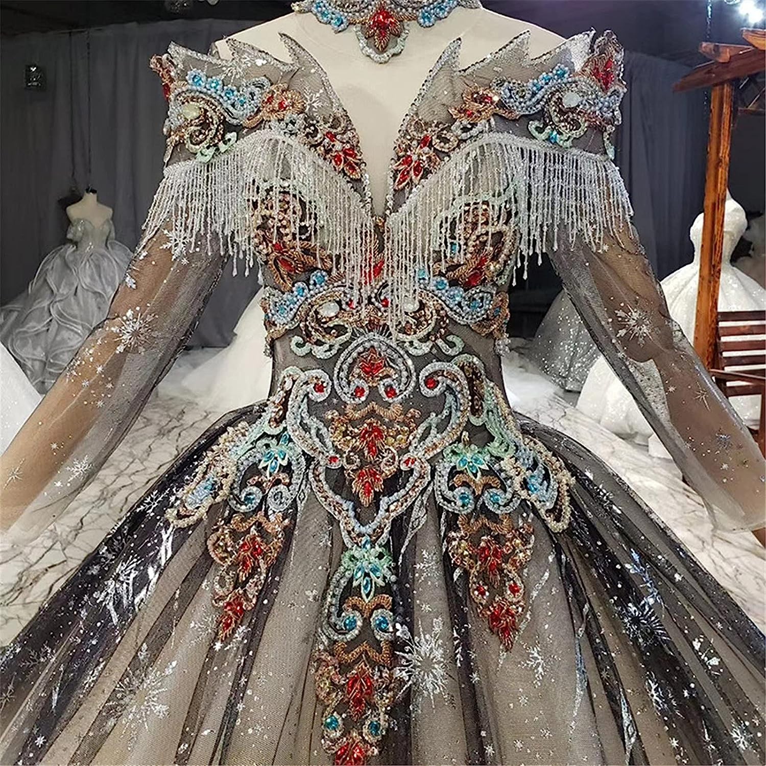 Duaruimo Customize Mesh Wedding Evening Dress Tassel Prom Bride Dresses,Black