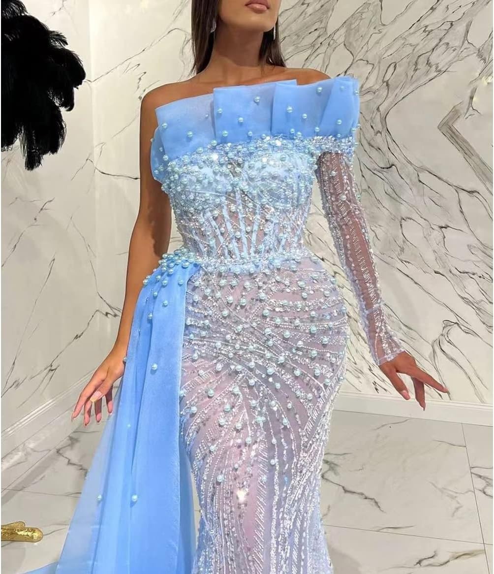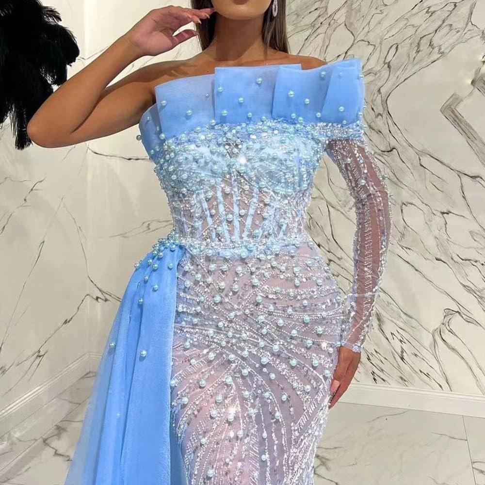 Elegant Sexy -Shoulder Evening Dresses Gowns Pearls Beaded Party