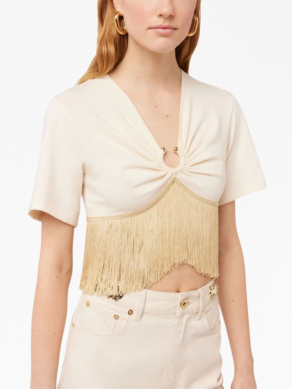 fringed-trimmed cropped T-shirt