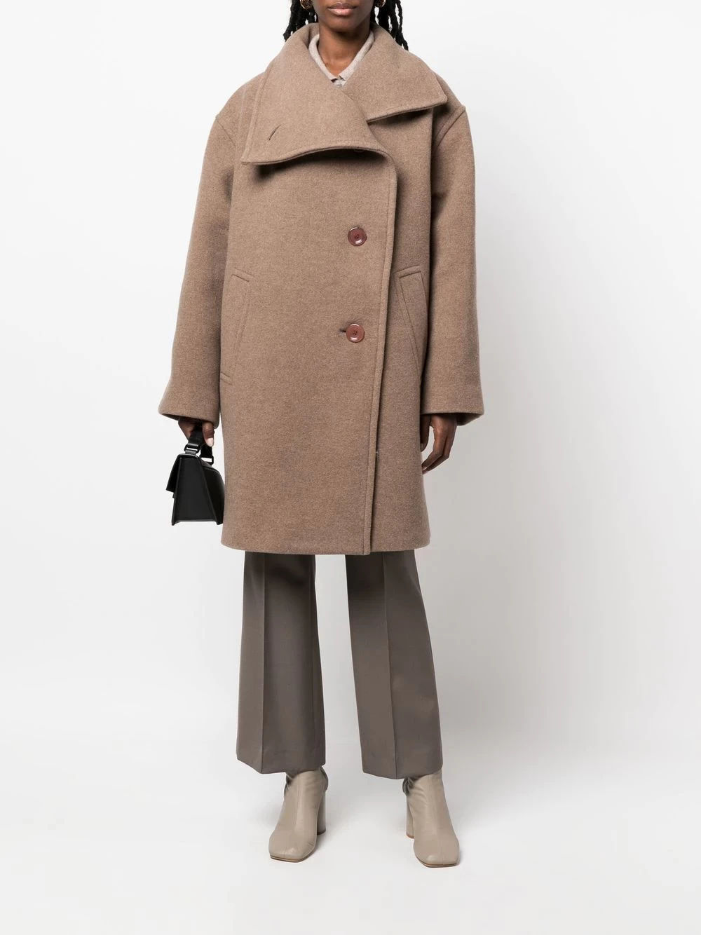 funnel-neck single-breasted coat
