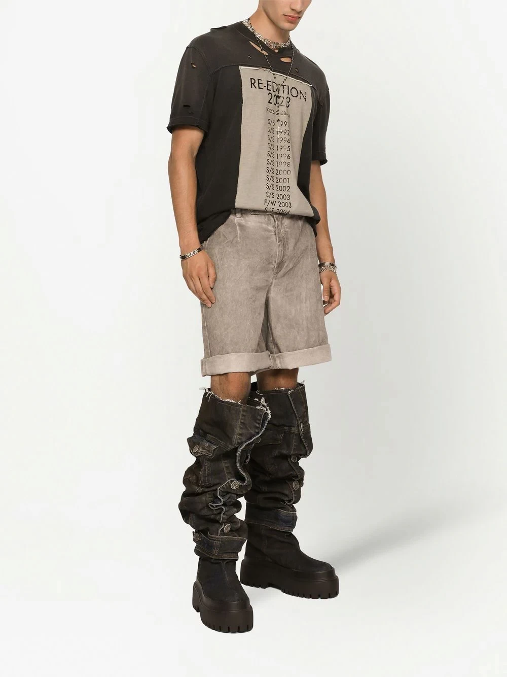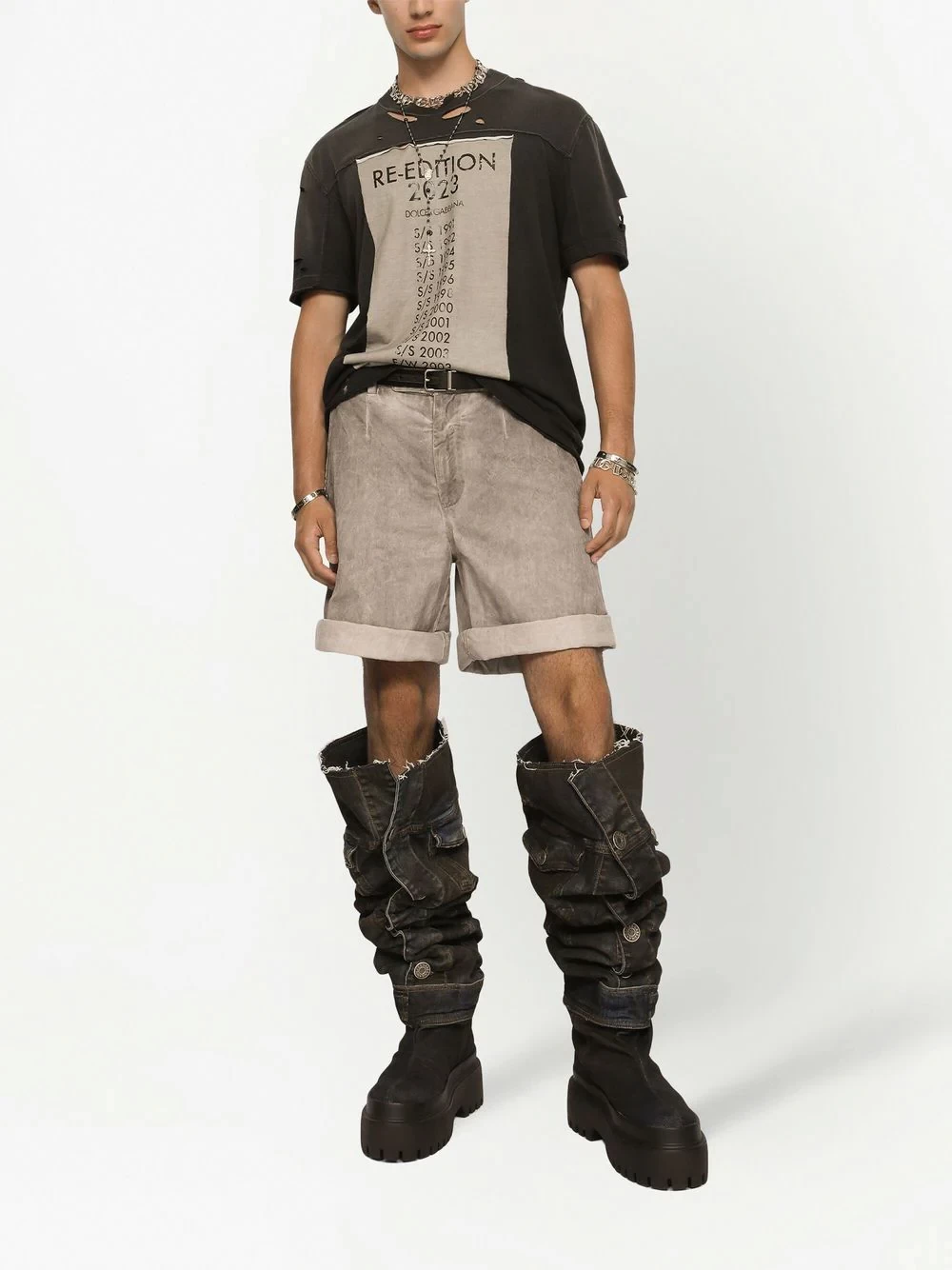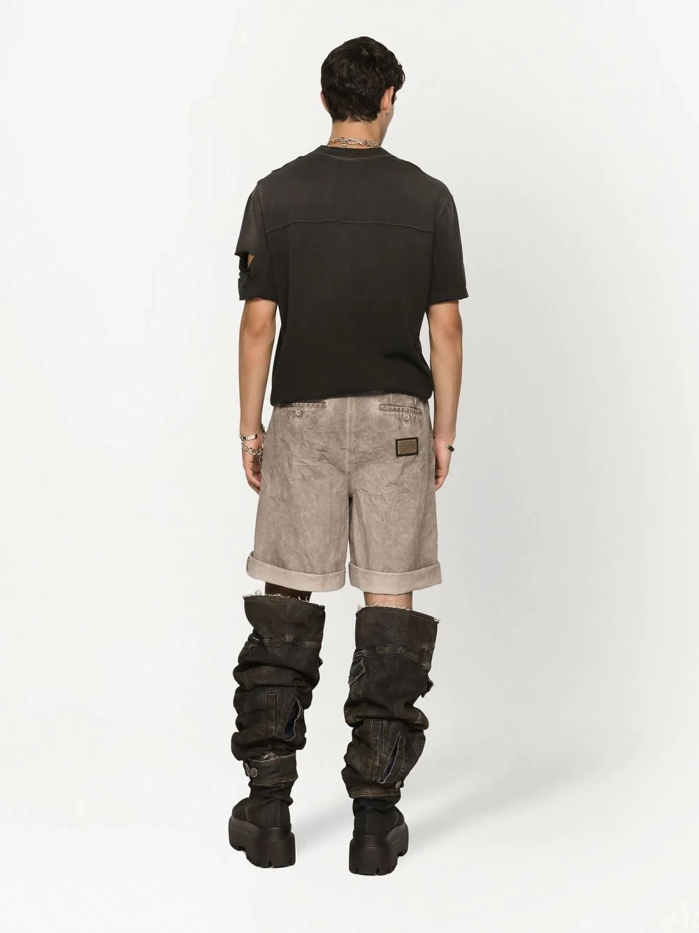 Logo plaque sashed stretch denim shorts - DOLCE & GABBANA
