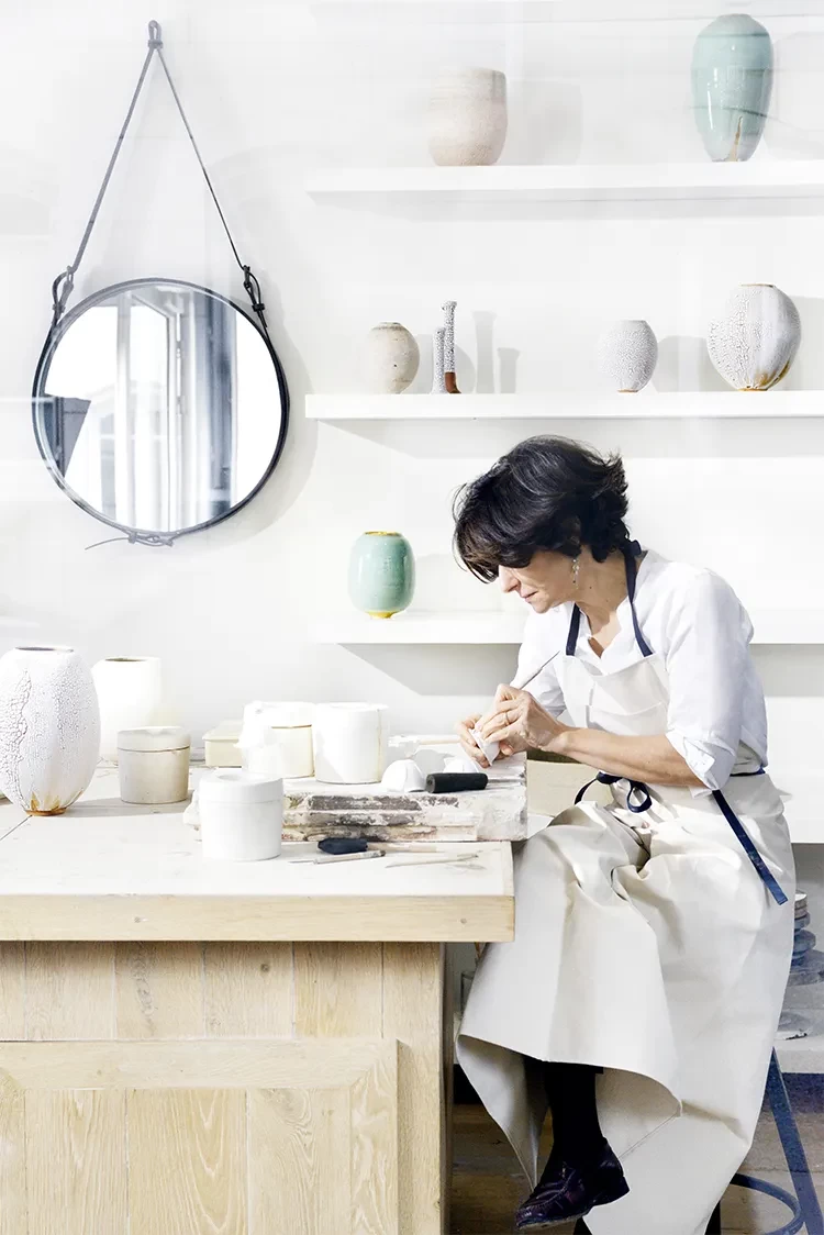 Every spring, Guerlain invites artists to participate in an artistic collaboration to create creative bottle decorations for the iconic bee-print bottle of Guerlain Lily of the Valley Eau de Parfum. In 2023, to commemorate the 170th anniversary of the birth of the Guerlain bee-print bottle, Guerlain invited ceramic artist Karen Swami and embroidery workshop Les Ateliers Vermont to create ceramic and embroidery themed designs.