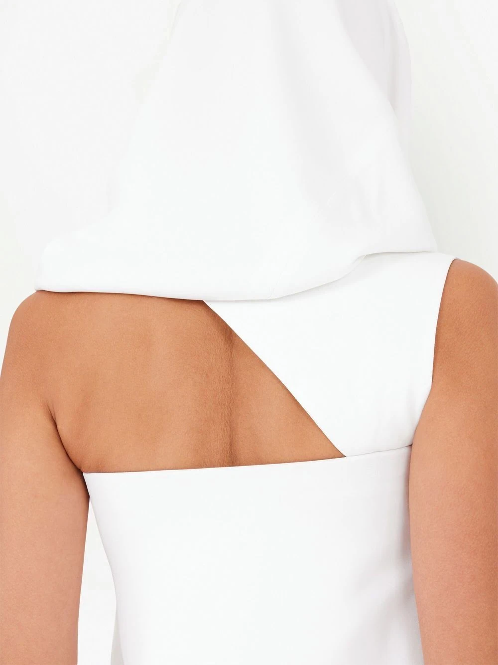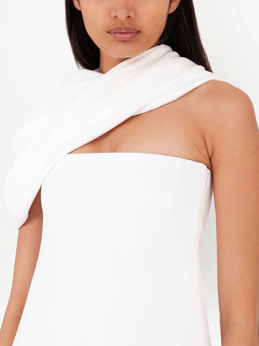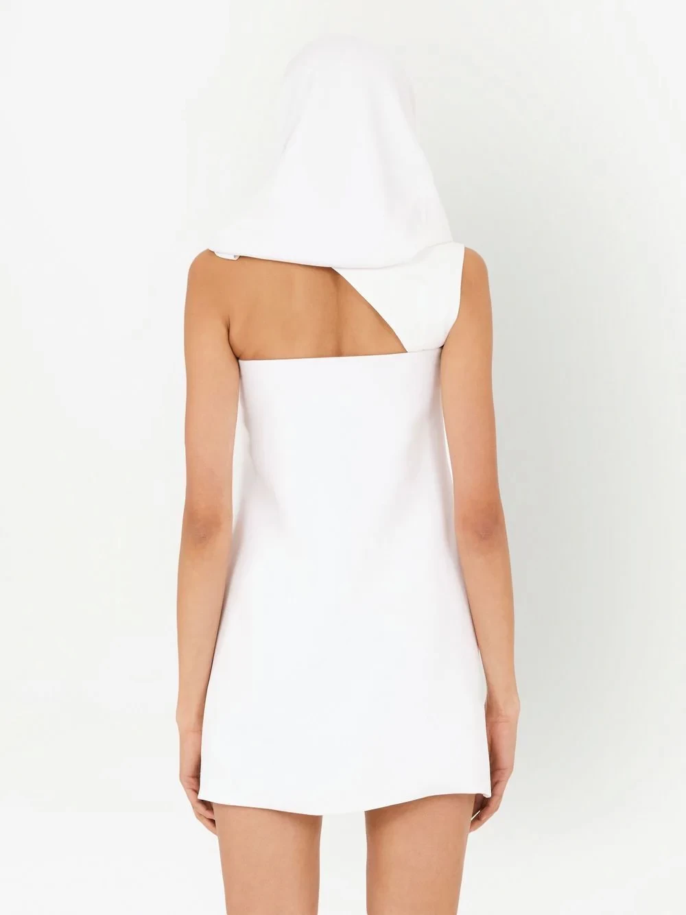 hooded one-shoulder mini dress from Ferragamo featuring white, slouchy hood, one-shoulder, concealed side zip fastening, straight hem, sleeveless and thigh-high.