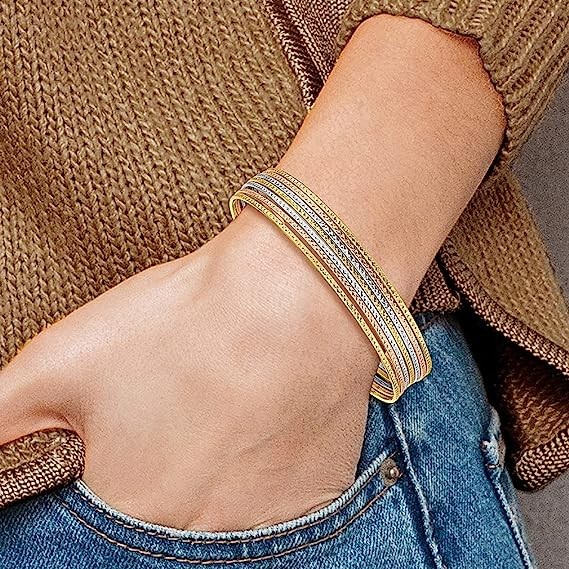 Sold Out; Solid 14 karat Tri Color ; Width 11mm ; Hypoallergenic ; Gifts
