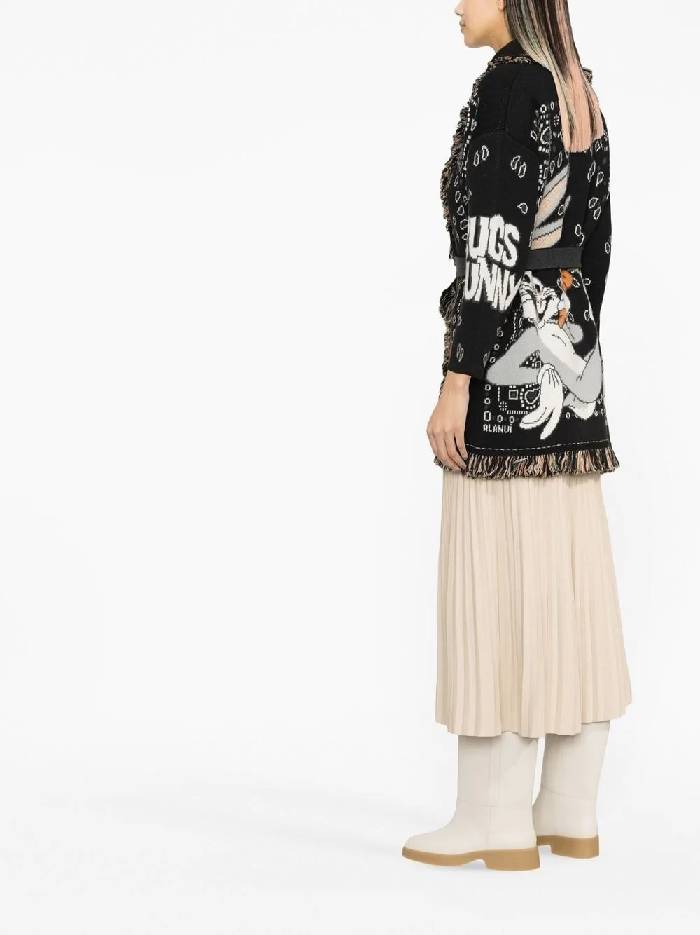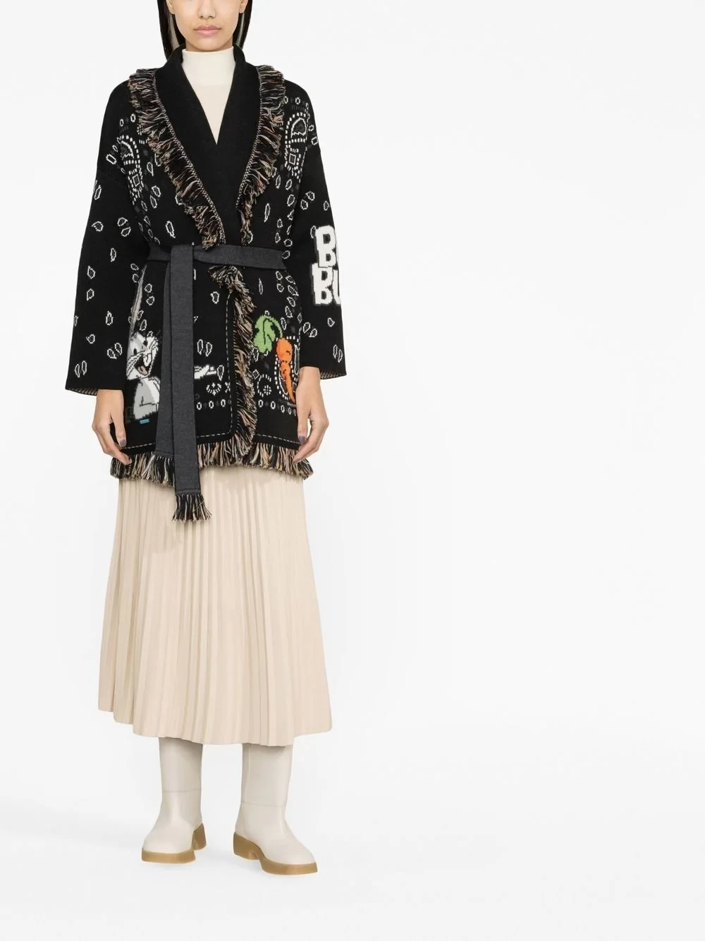 Alanui began in 2016 with a single knitwear item - a trend that continues to be a foundation for current pieces, in particular bandana-pattern cardigans, with this iteration that features a Bugs Bunny intarsia knit.