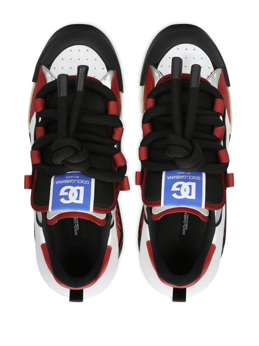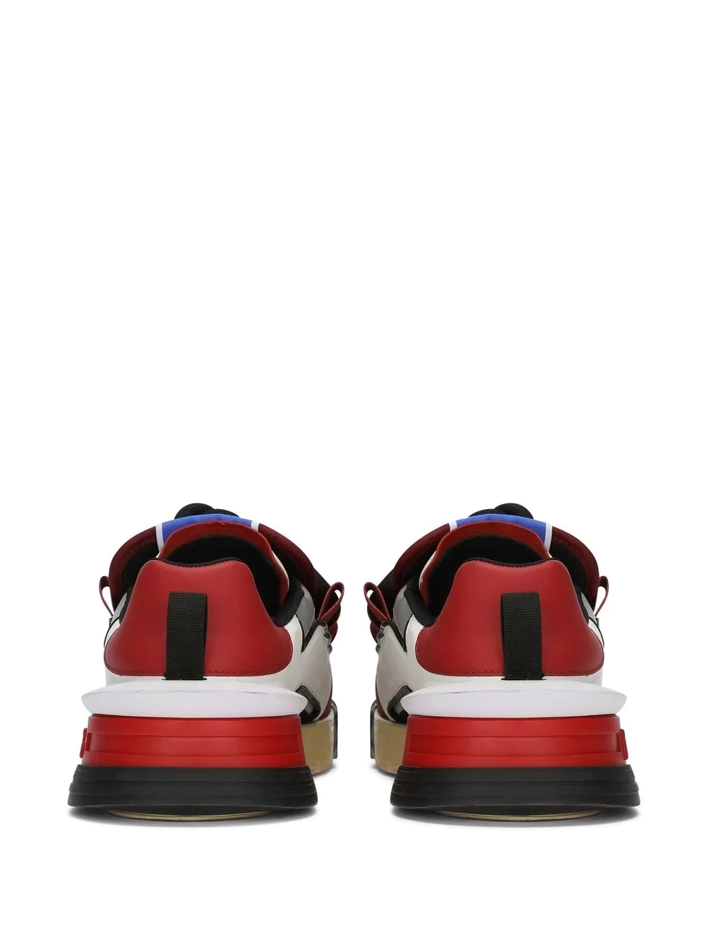 These sneakers from Dolce & Gabbana boast an intriguing silhouette, thanks to oversized laces and an exaggerated tongue, contrasted with silver-tone detailing throughout that gives this pair a futuristic feel.