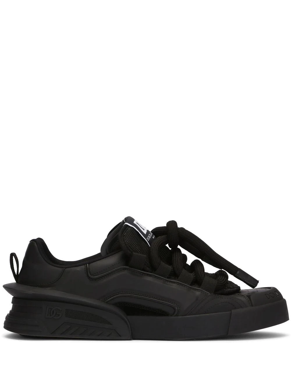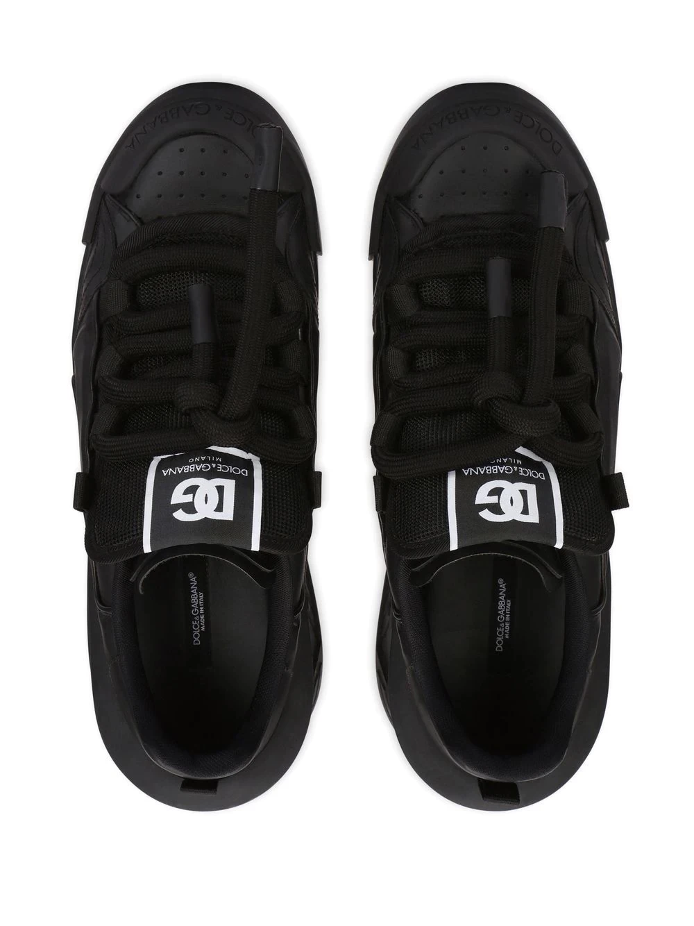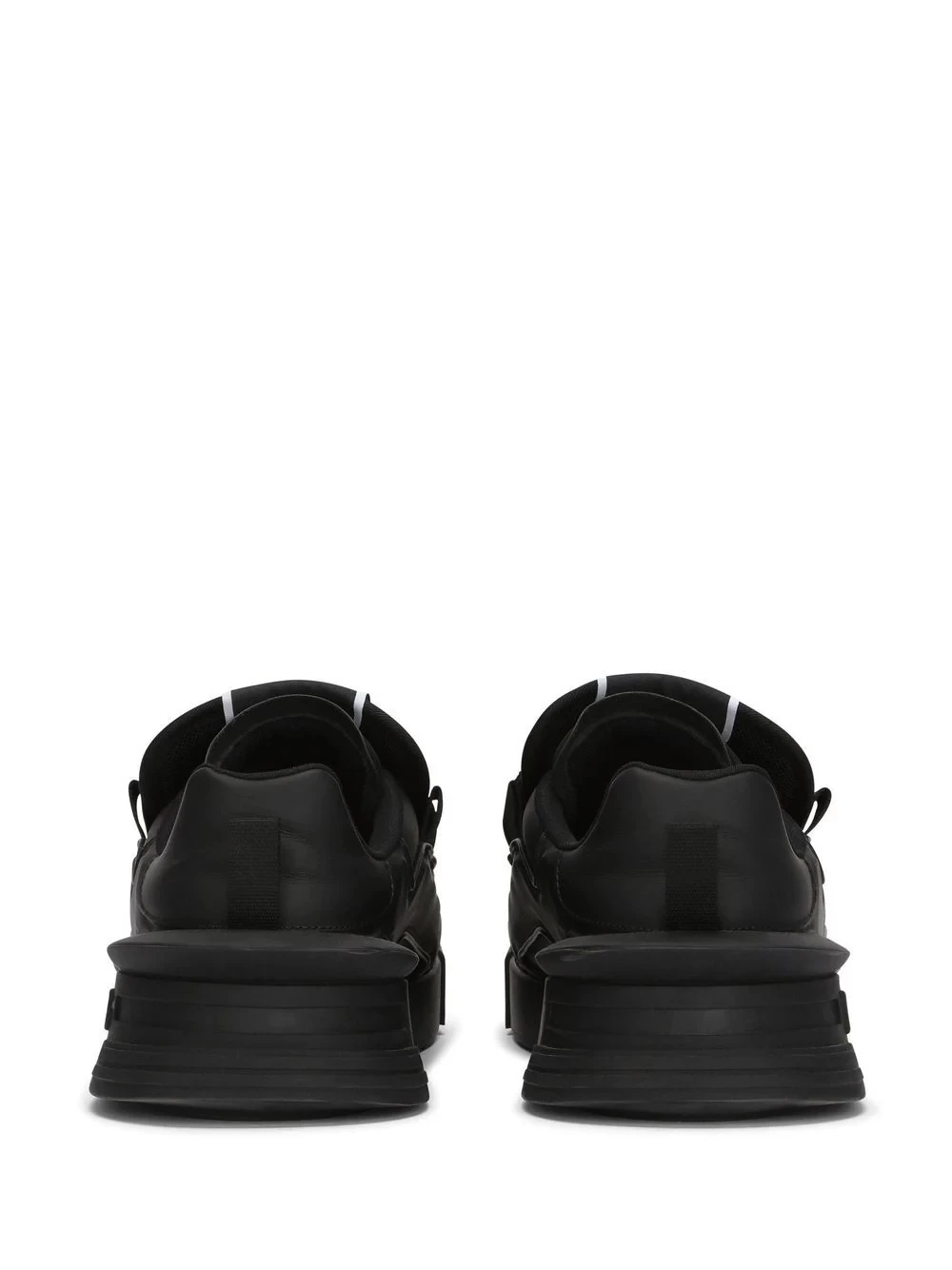 Dolce & Gabbana exhibit a sleek and contemporary aesthetic with these sneakers. The understated black colourway plays host to oversized lace detailing and a structural rubber outsole while the brand’s signature monogram logo is featured on the tongue.