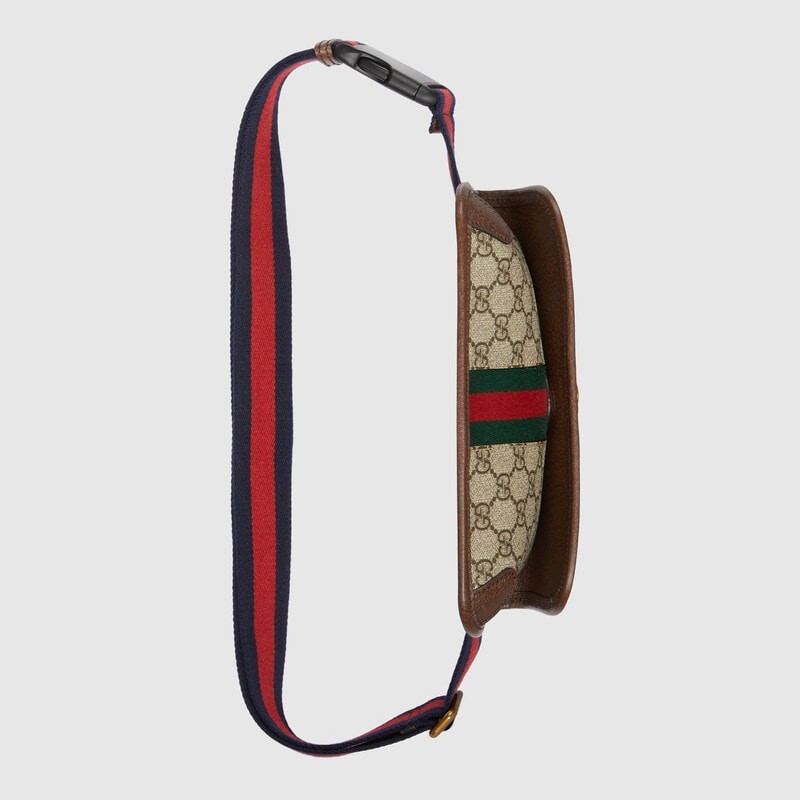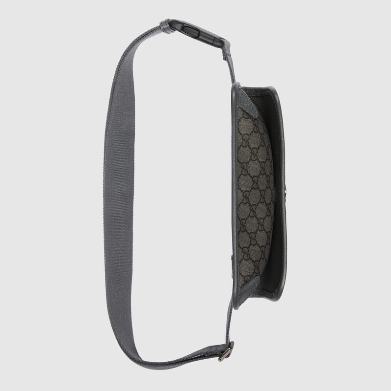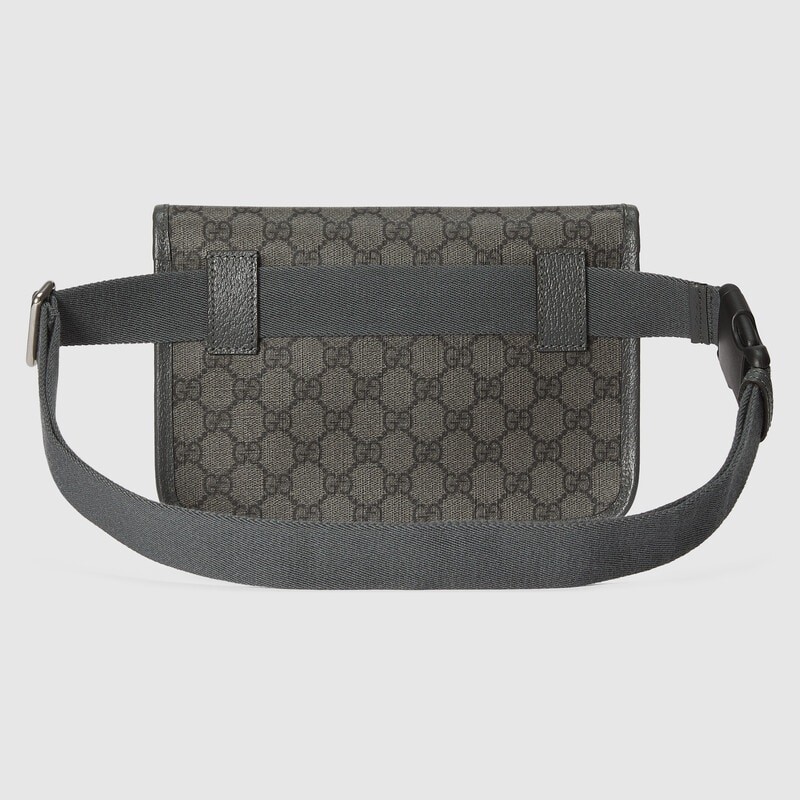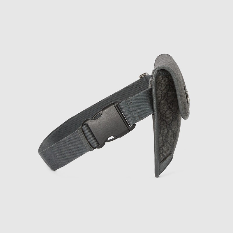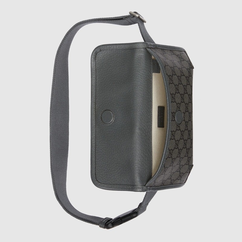 • The Ophidia collection blends the essence of Gucci tradition with modern design. This men's belt bag is a clever blend of double G accessories and GG Supreme canvas in grey and black for a new twist on classic materials. The adjustable waist strap creates a variety of carrying options.