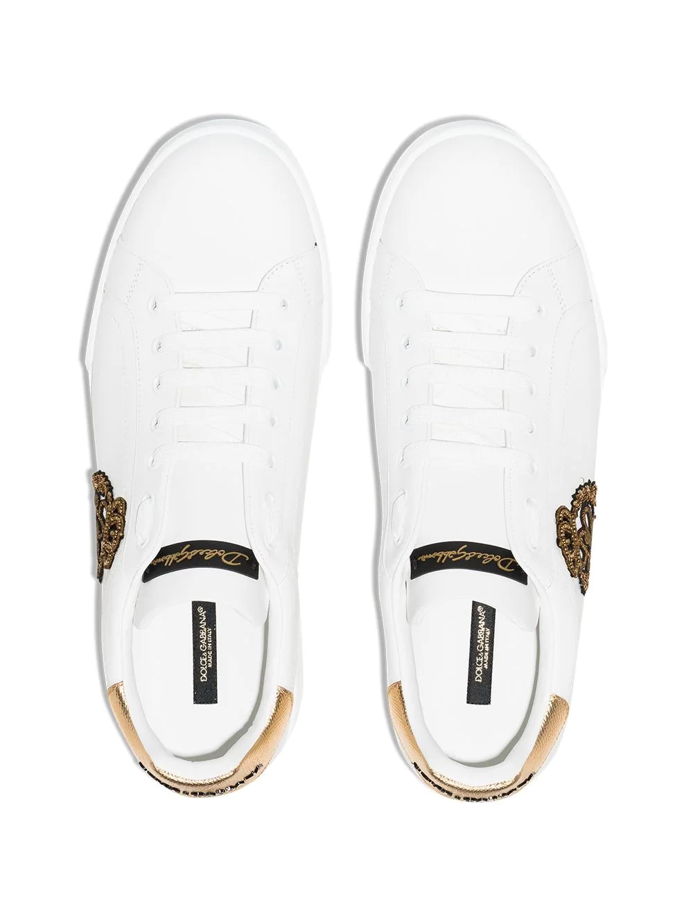 Dolce & Gabbana Men's Calfskin Nappa Portofino Sneakers With Crown Patch