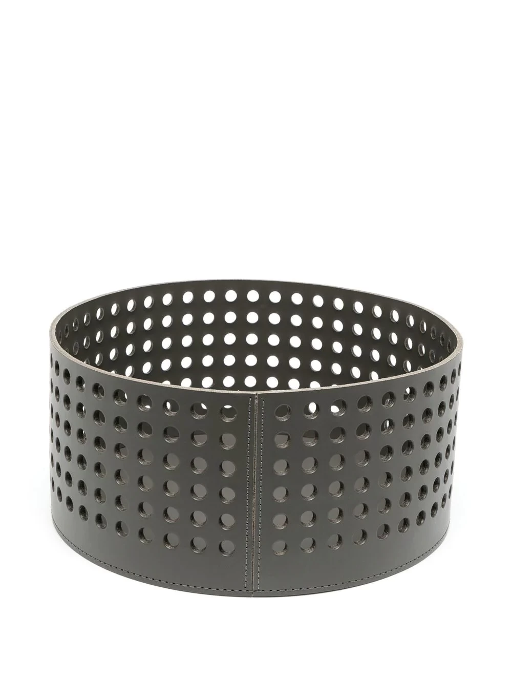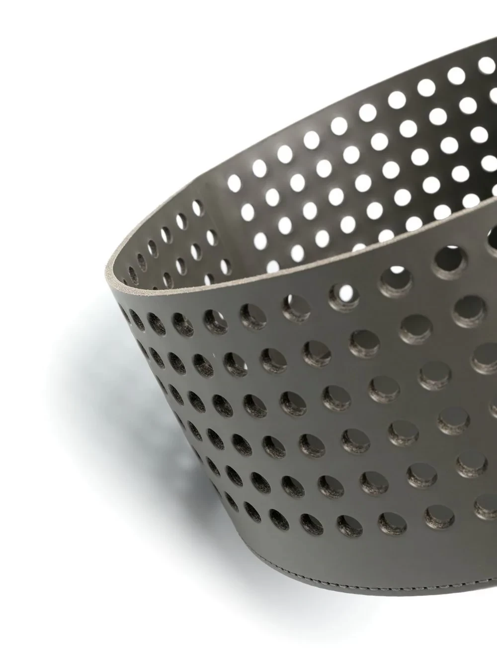 tall medium Mimosa basket from Rabitti 1969 featuring tonal stitching, perforated design, curve-edge body, graphite grey and calf leather.