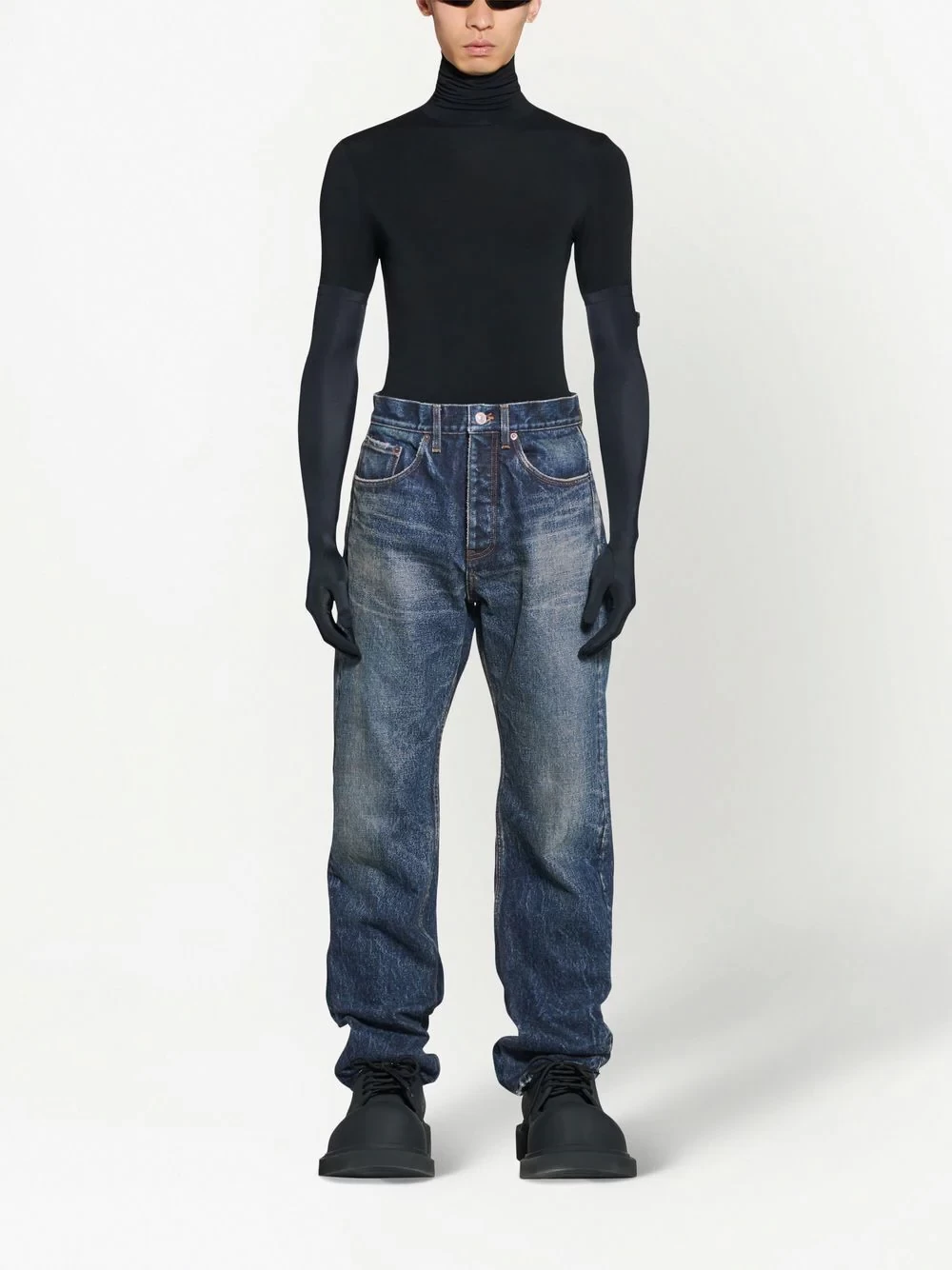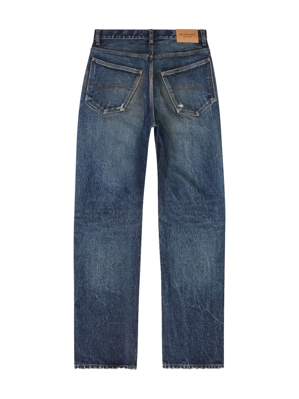 Relaxed straight-leg jeans from BALENCIAGA featuring blue, cotton, skinny cut, mid-rise, belt loops, button fly fastening and classic five pockets. Conscious: We've partnered with Good On You – an ethical agency that rates how sustainably brands perform. This item comes from a brand that performs well in relation to their impact on the planet..