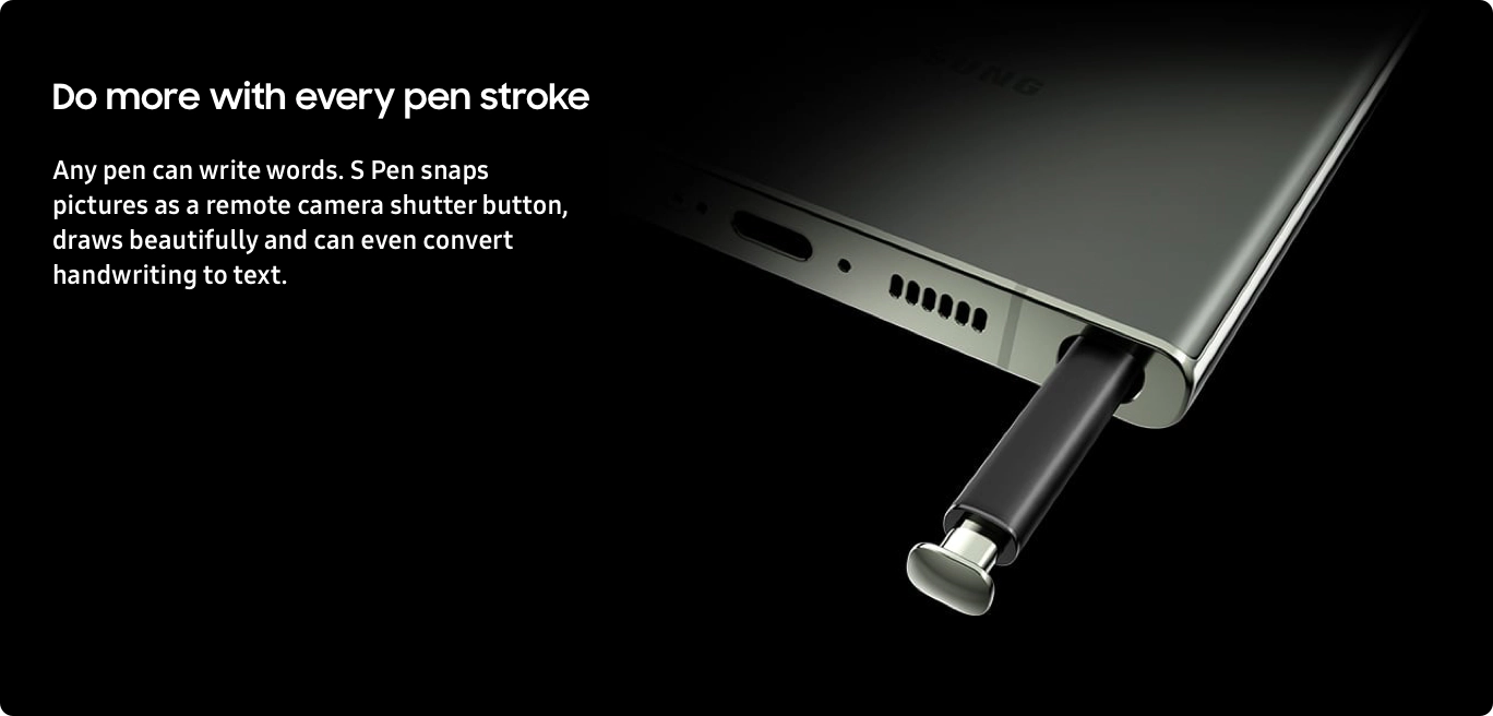 • WRITE, DRAW, CREATE w/ S PEN: Whether you’re in Samsung Note, Microsoft Office or Google Suite, with the built-in S Pen, you can convert handwriting to text, share your creations live and keep everything on your Galaxy S23 Ultra device