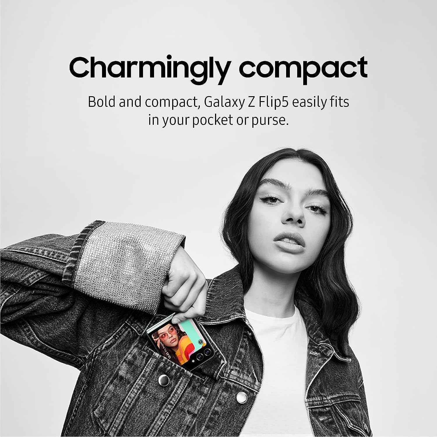 • PURSE, POCKET & PALM PERFECT: Flex the pocket-perfect and powerful Galaxy Z Flip5; With its innovative design, this compact phone is packed with a big personality