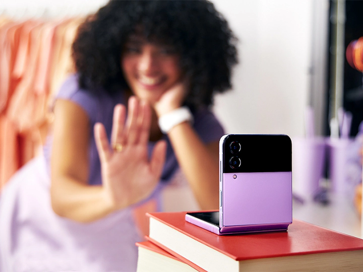 • FLEX, POSE, POST: Getting that post-worthy solo shot is easy with a phone that stands on its own; Put Galaxy Z Flip4 in Flex Mode and capture hands-free selfies, record your epic dance moves and never worry about your makeshift tripod falling over again.Form_factor : Flip