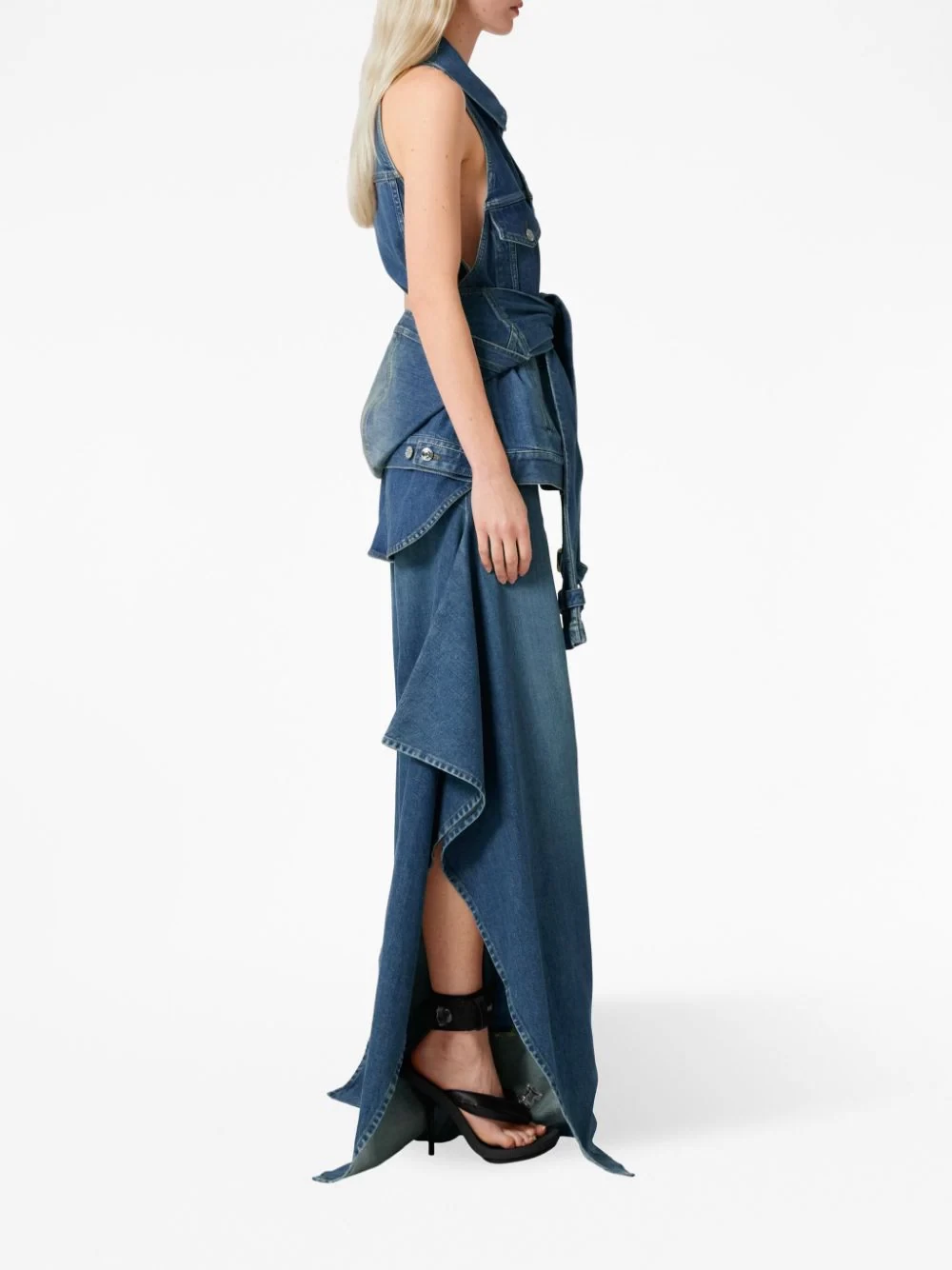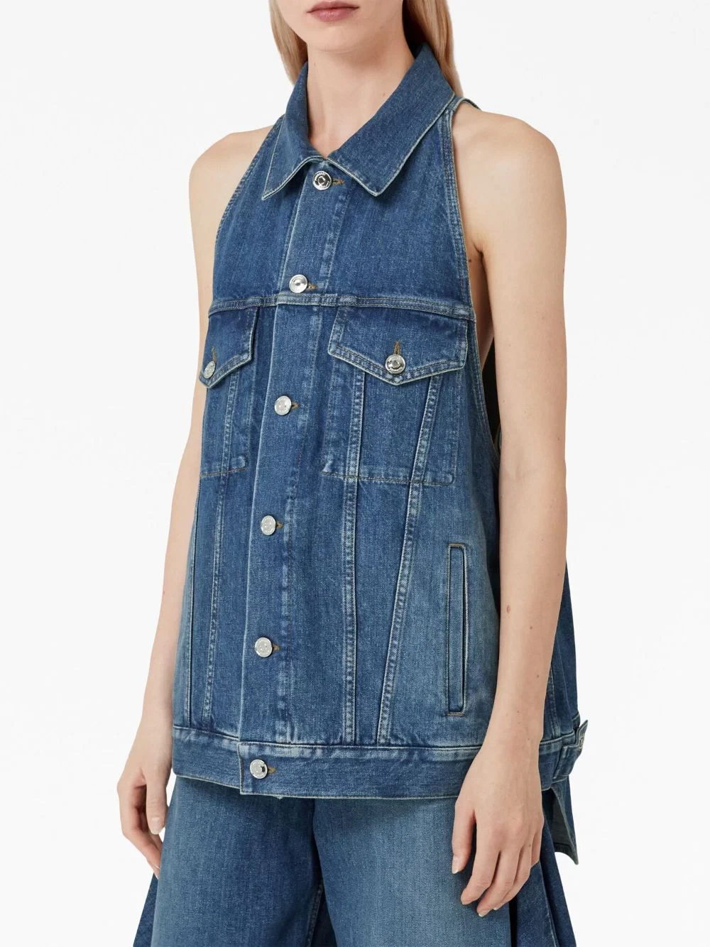 Sleeveless stonewashed denim jacket