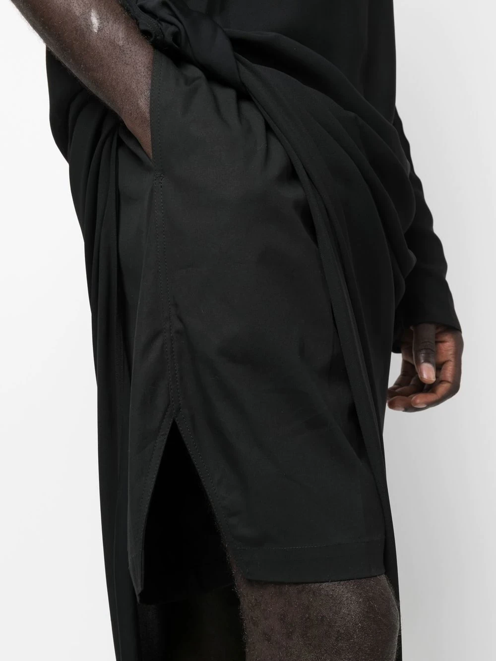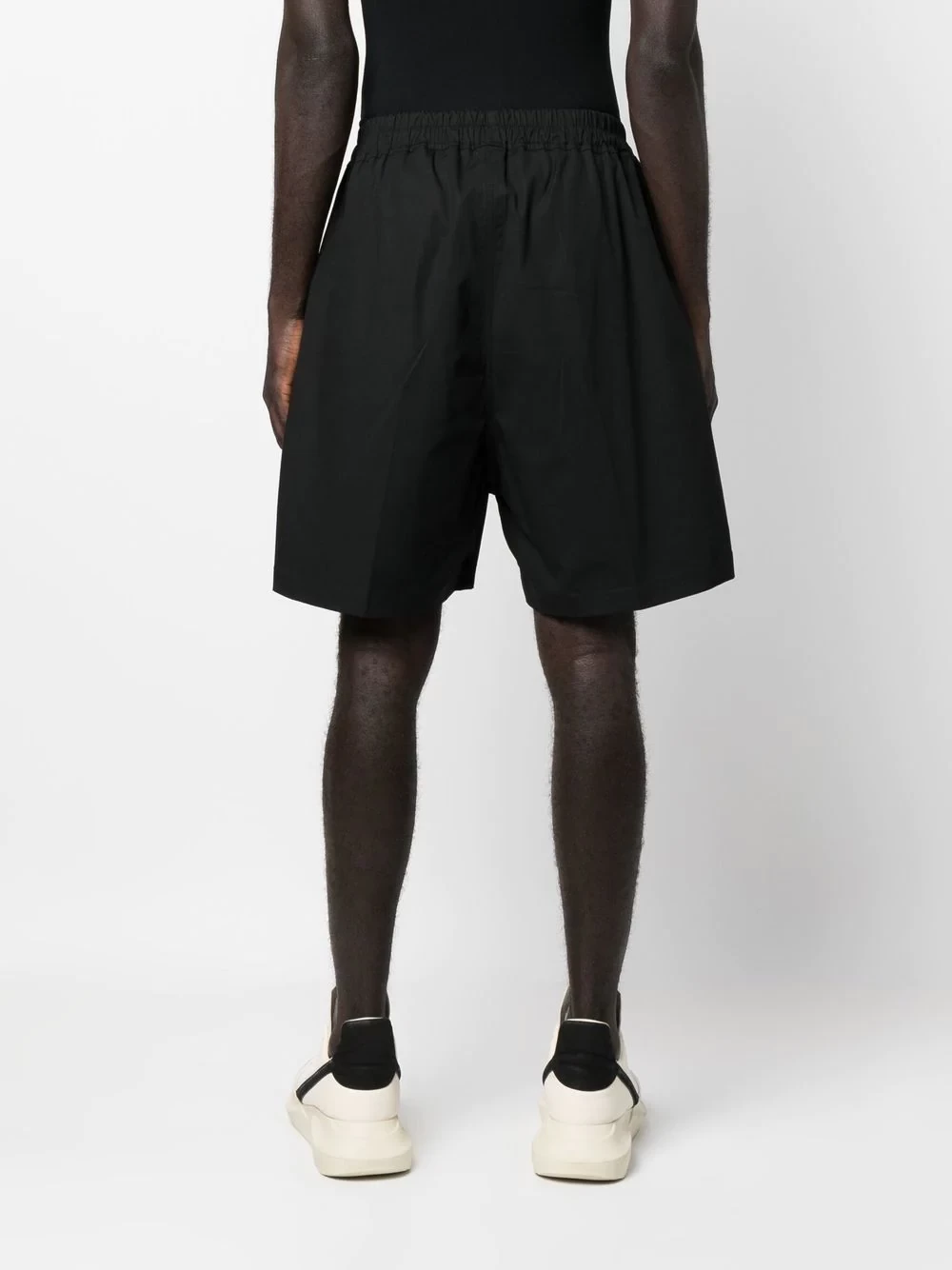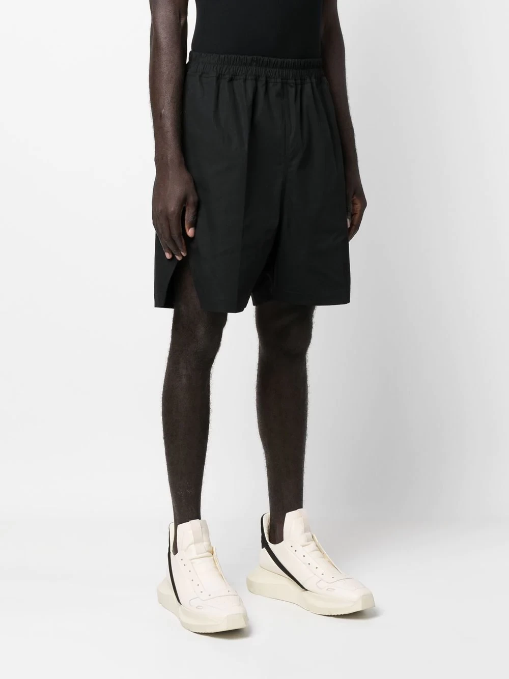 straight-leg track shorts from Rick Owens featuring black, elasticated waistband, side slits and straight leg.