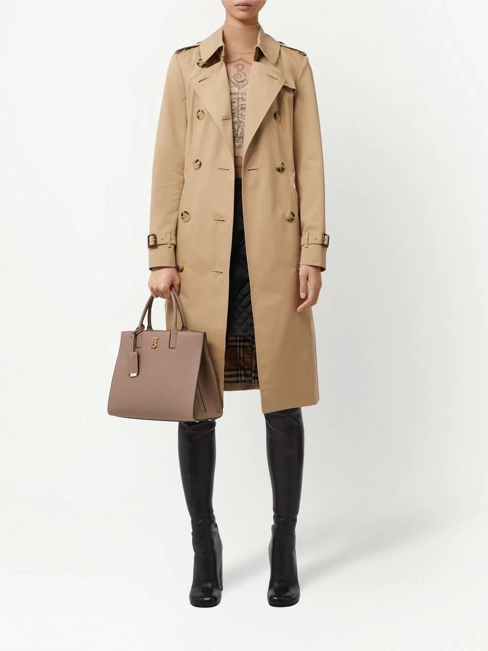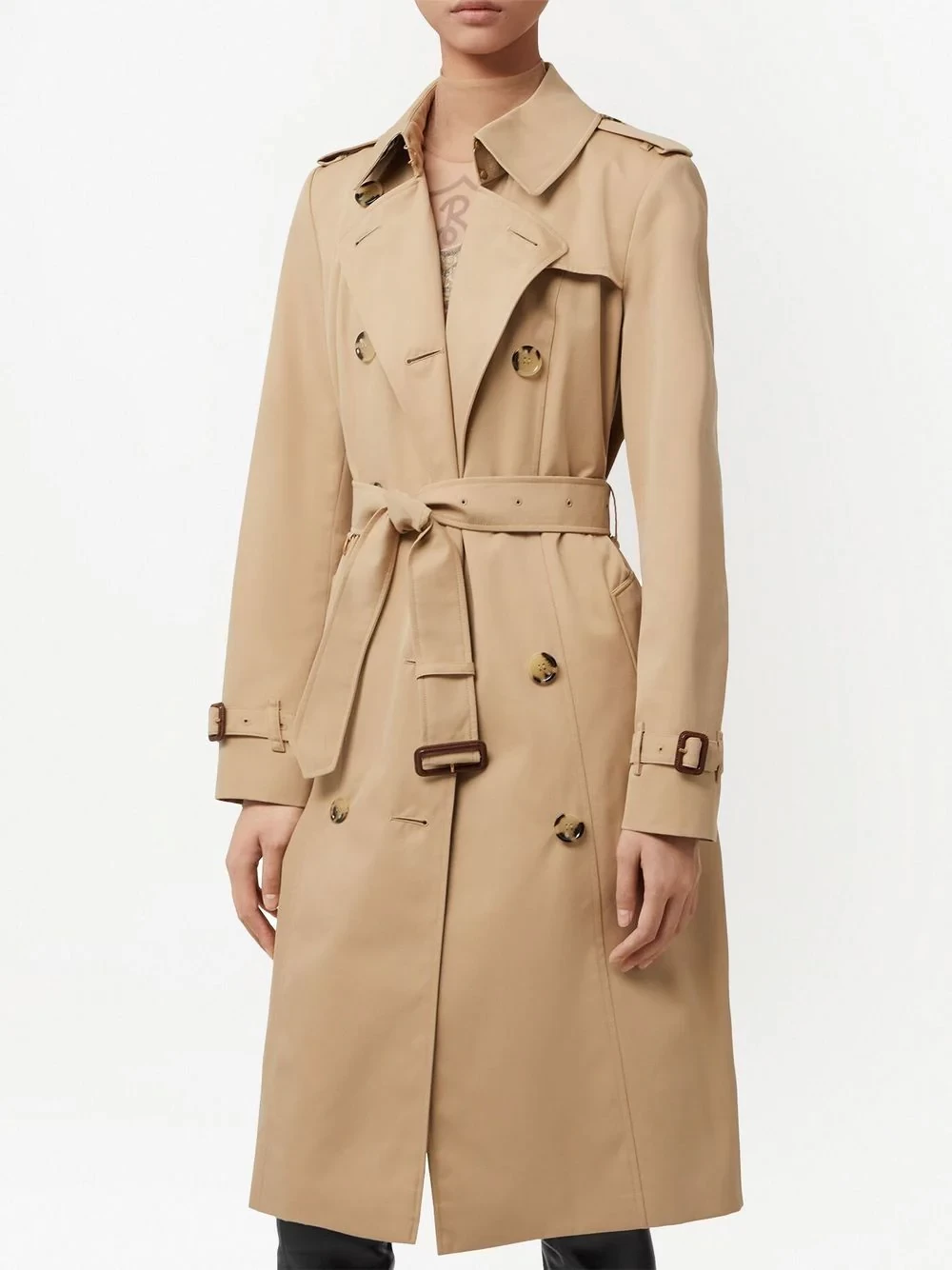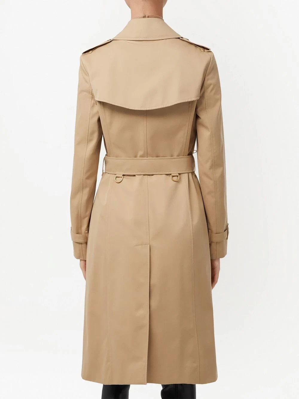 Collection in a honey colour, the Long Chelsea Heritage trench coat has become one of the house's most recognisable silhouettes. Belted at the waist for a defined shape, this outerwear design is lined with a Vintage Check print as a nod to the brand's heritage.