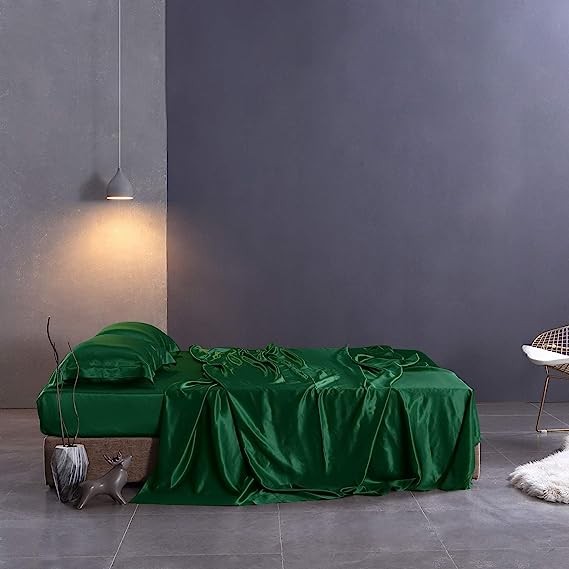 THXSILK Silk Sheets King Size, 4 Pcs 100% Mulberry Silk Bed Sheets, Flat Sheet Fitted Sheet Pillowcases Set – All Side 7A+ Top Grade Silk, Emerald Green