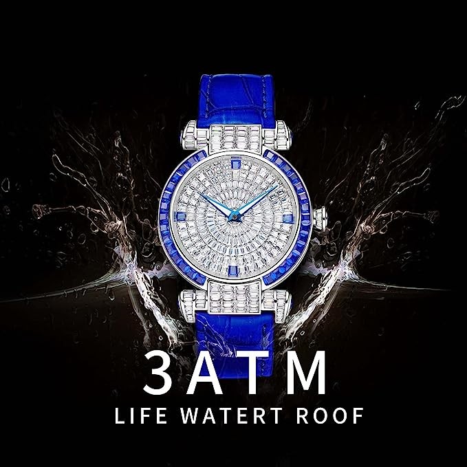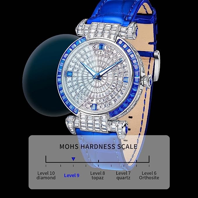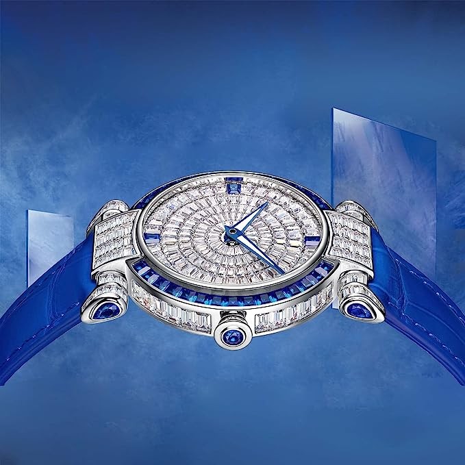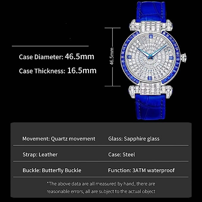 for the hand. The case is set with 95 genuine square-cut white diamonds,