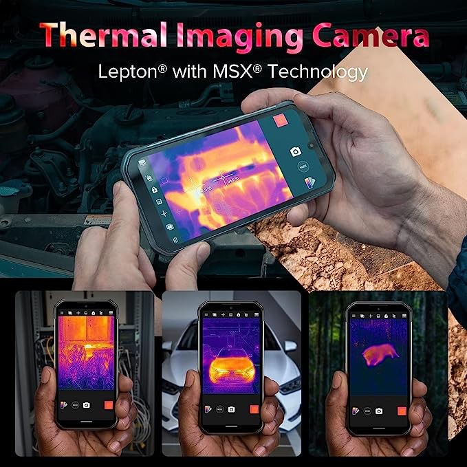• ?THERMAL IMAGING CAMERA RUGGED PHONE?Ulefone Armor 11T is configured with FLIR thermal imaging camera, with MSX technology and a 5MP auxiliary imaging camera on the Ulefone Armor 11T 5G smartphones can detect objects in the scene and create thermal images based on temperature. The measurable temperature range: -10℃ - 400℃, visualizes heat that is invisible to the naked eye, highlighting temperature contrasts.