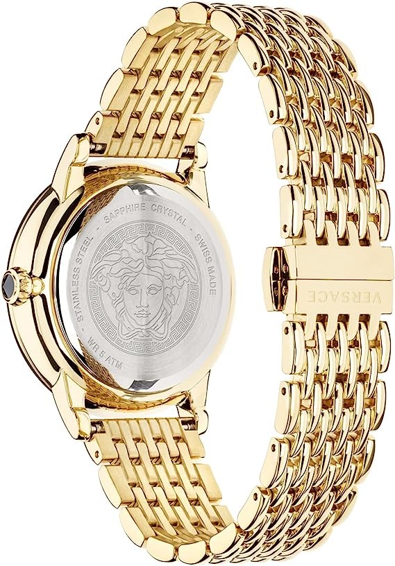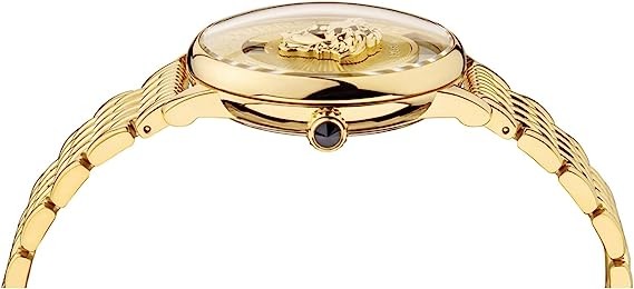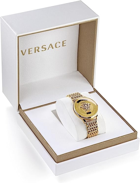 Versace Medusa Icon Collection Luxury Womens Watch Timepiece with a Gold Bracelet Featuring a IP Yellow Gold Case and Gold Dial